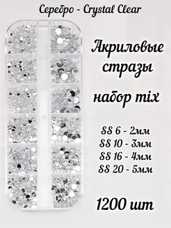 Стразы акриловые Crystal clear набор MIX серебро SS6-SS20
