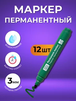 Маркер перманентный зеленый, нестираемый, набор 12 штук