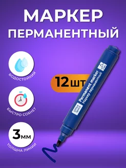 Маркер перманентный синий, нестираемый, набор 12 штуки