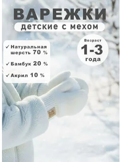 Варежки с мехом зимние новый год 1 2 3 года