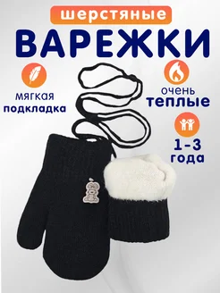 варежки детские зимние на веревочки 1 2 3 года