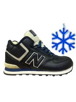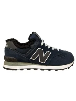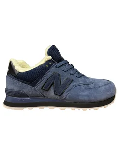 Зимние Кроссовки NB 574 Замша Синие с мехом