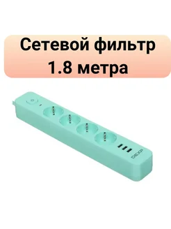 Сетевой фильтр мятный, розетки - 4, USB - 3, 16 А, 3680 Вт