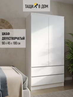 Шкаф деревянный двухстворчатый с 2-мя ящиками, 90х45х180 см