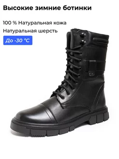 Ботинки высокие утепленные берцы с молнией толстой подошвой