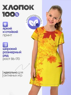 Платье детское короткое ОСЕННИЕ ЦВЕТА ЗОЛОТАЯ ОСЕНЬ