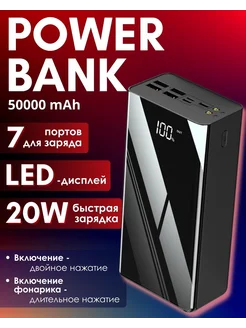 Повербанк 50000 мАч с быстрой зарядкой 20Вт LED-дисплей фона…