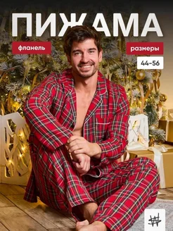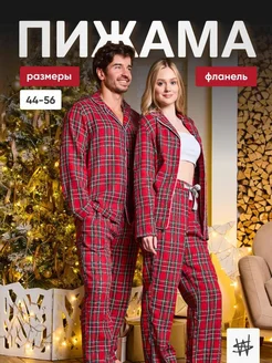Пижама со штанами и рубашкой в клетку теплая хлопок фланель