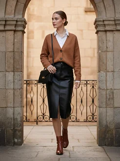 Юбка женская осень миди кожаная