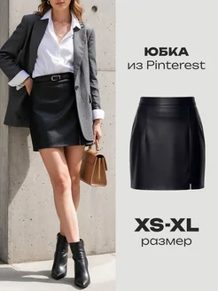 Юбка женская осень мини кожаная