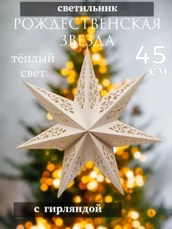 Рождественская звезда светильник с гирляндой 45см. - 2штуки