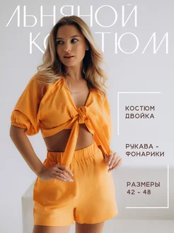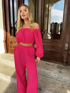 Муслиновый пляжный костюм с брюками палаццо и топом