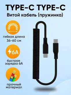Витой кабель Type-C Type-C короткий 0 5м (пружина)