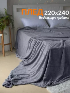 Плед на кровать кингсайз 240х260 большой серый