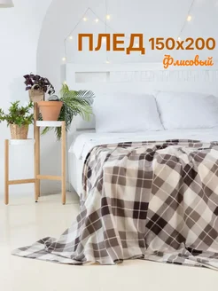 Плед флисовый для фотосессии 150х200 см бежевый клетчатый