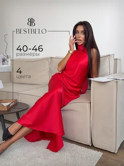 Платье комбинация вечернее шелковое атласное