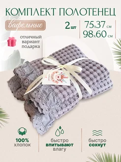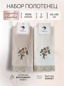 Набор полотенец вафельных с вышивкой и кружевом (2 шт.)