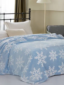 Плед 180х200 новогодний пушистый на диван со снежинками