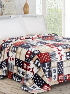 Плед 180х200 толстый новогодний скандинавский с оленями