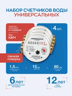 Набор счетчиков воды 15У-80, универсальный, без КМЧ. (4 шт)