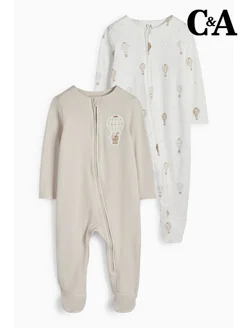 Комплект из 2х хлопковых комбинезонов с принтом