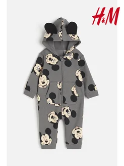 Хлопковый комбинезон с мягким начесом и принтом Микки Маус