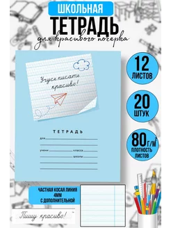 Тетрадь школьная в линейку косую 5 мм 20шт