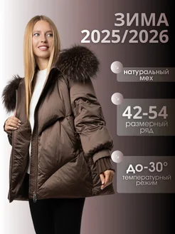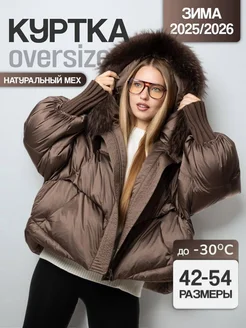 Куртка зимняя оверсайз с капюшоном и натуральным мехом