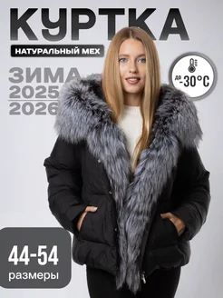 Зимняя куртка пуховик с капюшоном и мехом натуральным
