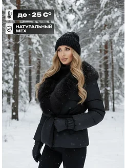 Куртка пуховик зимний короткий с мехом натуральным капюшоном