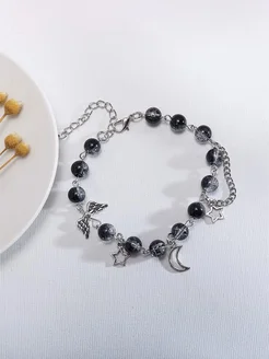 Браслет, цепочка с бисером Y2K, Звёзды и луна, чёрный