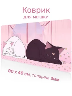 Коврик для мыши 90x40см, Сейлор Мун, Артемис и Луна, розовые