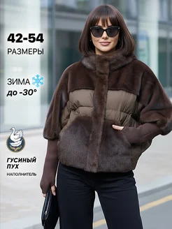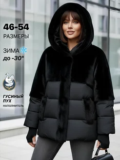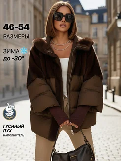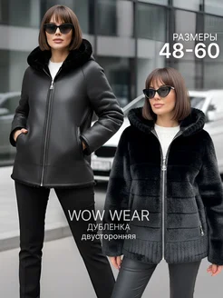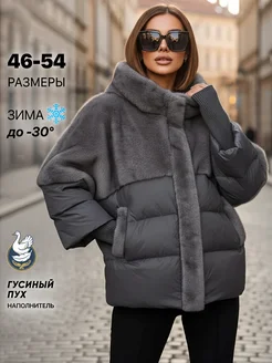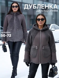Дубленка зимняя двусторонняя короткая с капюшоном оверсайз