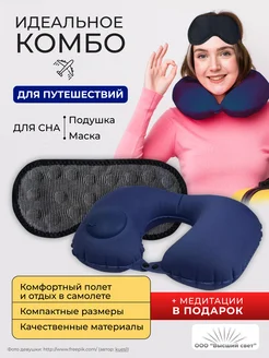 Магнитная маска для сна на резинке + Подушка для путешествий