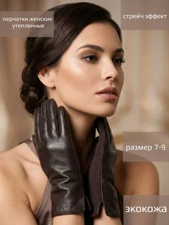 Перчатки демисезонные коричневые теплые эко-кожа
