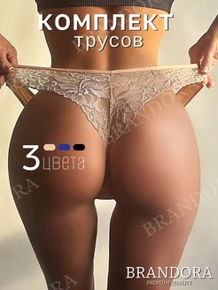 Трусы бесшовные кружевные бразильяна набор 3 штуки