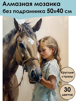 Алмазная мозаика «Девочка с лошадью» 50x40 см