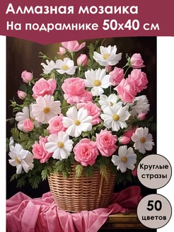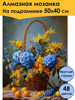 Алмазная мозаика на подрамнике «Корзинка цветов» 50x40 см
