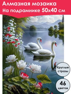 Алмазная мозаика на подрамнике «Лебеди на озере» 50x40 см