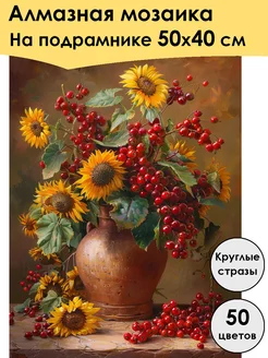 Алмазная мозаика «Подсолнухи и калина» 50x40 см