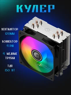 Кулер процессора башенный черный RGB Снеговик Intel и AMD