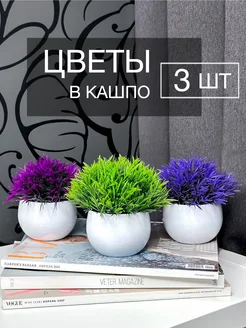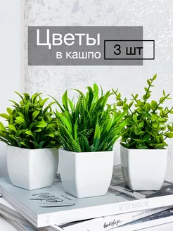 Набор искусственных цветов в кашпо 3 шт
