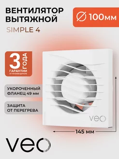 Вентилятор вытяжной 100 мм SIMPLE 4С, с обратным клапаном