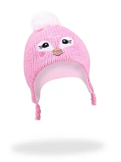 Шапка вязаная зимняя с помпоном и завязками с подкладкой