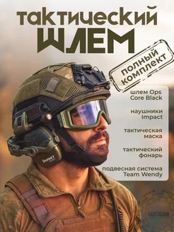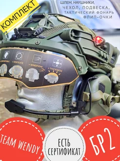Тактический шлем военный с наушниками БР2 полный комплект