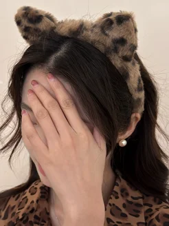 Ободок с леопардовым принтом и ушками