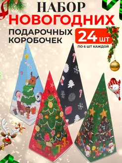 Маленькие новогодние подарочные коробочки 24 шт пирамидки