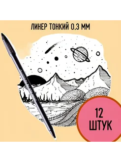 Ручка капиллярная линер черная 12 шт 0,3 мм
