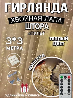 Гирлянда штора 3х3 светодиодная хвойная лапа