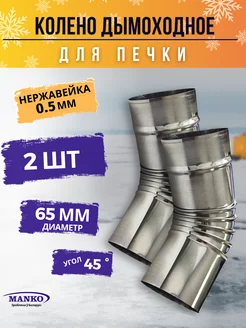 Колено дымоходное для печи буржуйки 65 мм, 2 шт